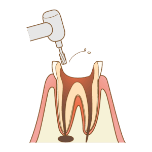 虫歯の部分、古い詰め物や被せ物、土台などを丁寧に取り除き、根管にアクセスできる状態に整えます。