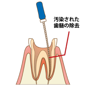 専用の細い器具(ファイル)を使って、根管の内部を少しずつ広げながら、感染した部分を取り除きます。